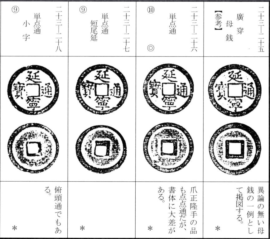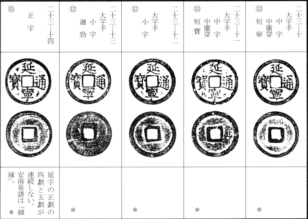 译文:后黎朝仁宗于延宁年间(延宁元年为日本亨德三年,明景泰五年,公元1454年)铸延宁通宝,与大和通宝同属仁宗铸币。此钱呈黄褐至赤褐色铜质,铸造精良。有特大和等版别,也有爪正隆手类版别。皿延宁为稀少版别。以厚肉大样与制作精美著称,各版式差异显著,辨识度较高。