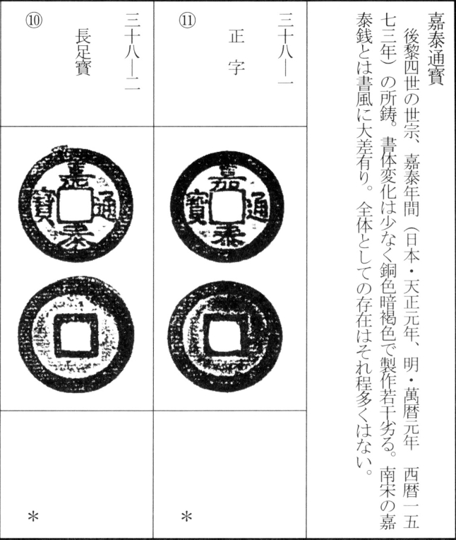 译文:嘉泰通宝为后黎朝中兴第四位皇帝世宗嘉泰年间(嘉泰元年为日本天正元年,明万历元年,公元1573年)所铸。钱文版式变化较少,铜色呈暗褐色,铸造工艺稍显逊色。其书法风格与南宋嘉泰钱迥然相异,整体存世量并不算多。