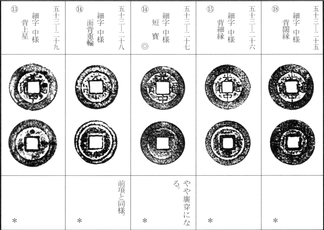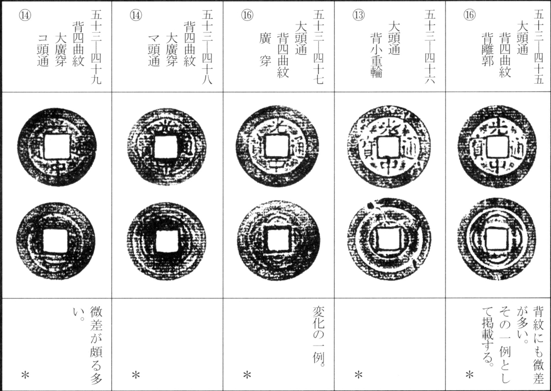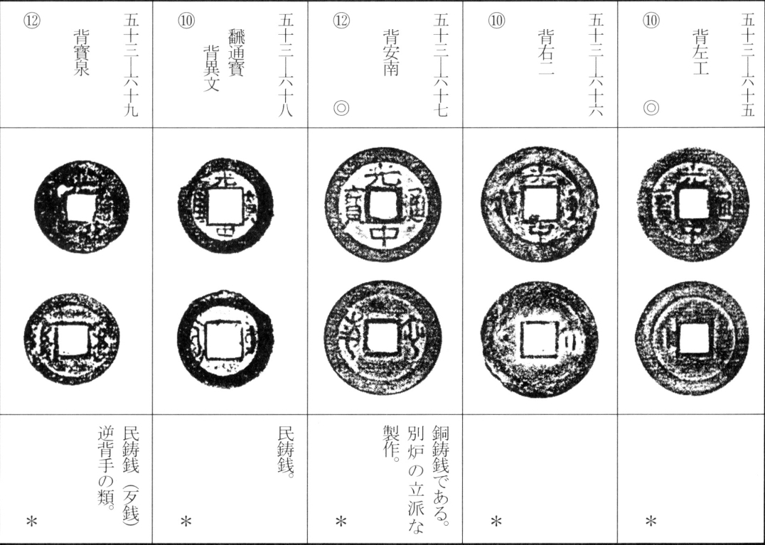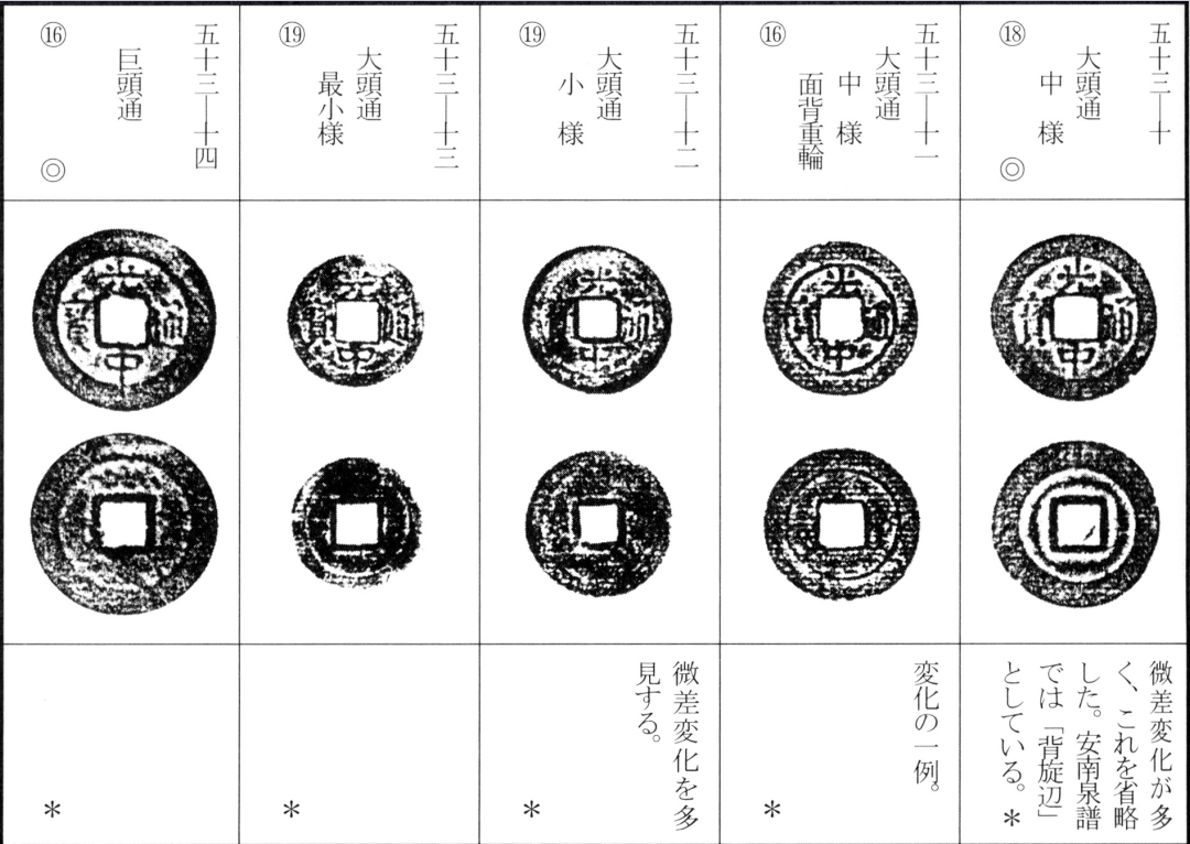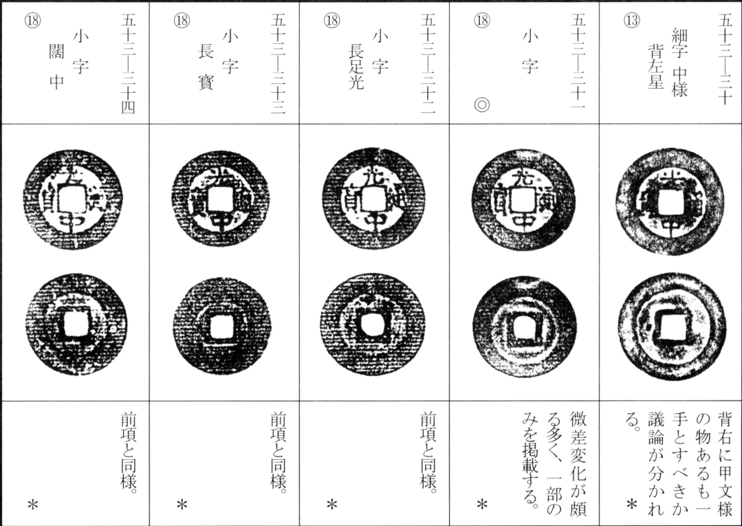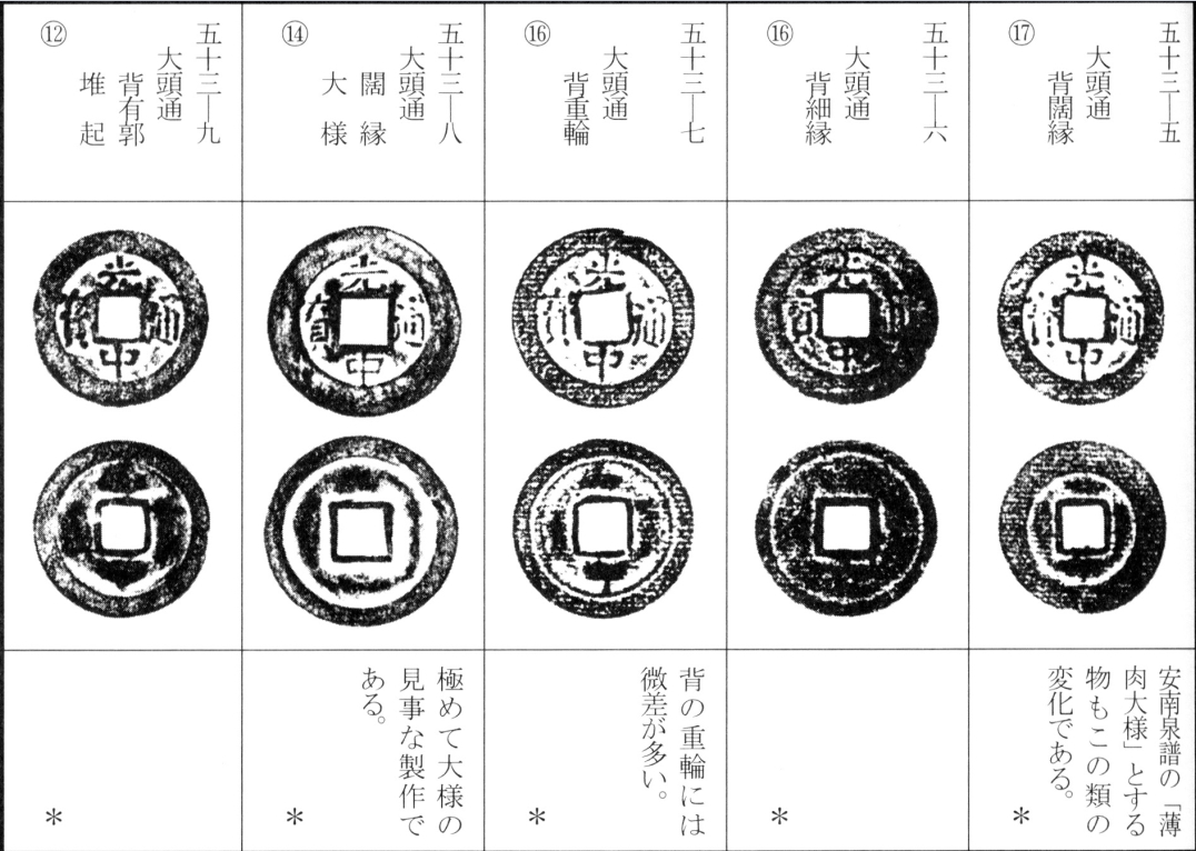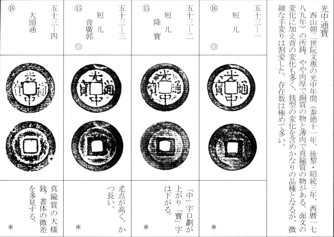 译文:光中通宝为西山朝第二位皇帝阮文惠光中年间(泰德十一年,后黎昭统三年,公元1789年)所铸钱币。其版式分为稍显厚重的铜质钱与较薄的真籤质钱两种。除面文变化外,背文版式亦颇为丰富,加之钱型差异,形成诸多品种(此处从略细微版别)。该钱存世数量极为庞大。