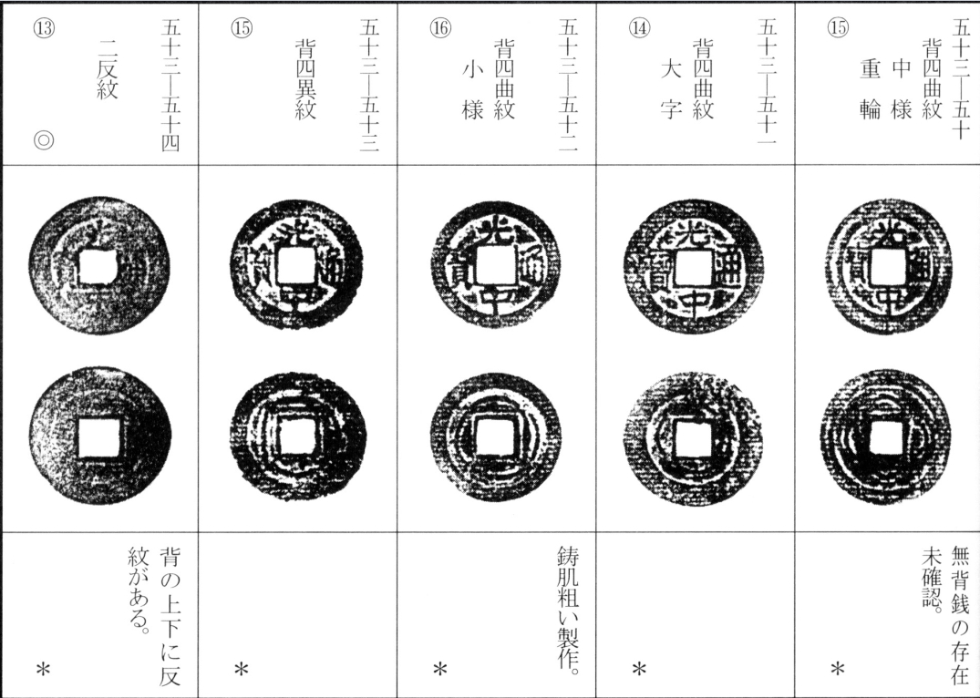 站长注:光中年号(公元1788年11月25日—1792年)共使用4年多。光中帝于1792年9月16日去世,景盛帝改第二年(1793年)为景盛元年。有观点认为光中背一、背二为光中元年和二年所铸。光中元年一共只有30多天,背一却并不少见,应是光中二年补铸。