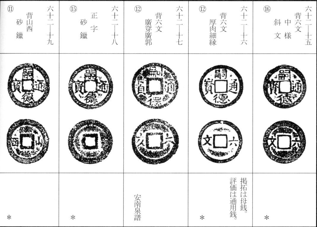 站长注:嗣德年号(公元1848年——1883年)共使用36年。嗣德通宝背六文始铸于嗣德二十五年(公元1872年)十月,据说有些背六文钱是用搜集来的西山朝钱币熔铸的。嗣德时期也铸造了金质钱和银质钱,以及数量不算少的铅锌钱。