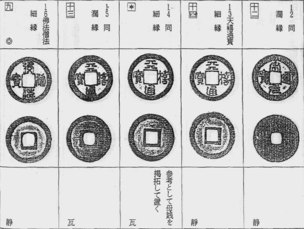 同体系的钱币包含“大定通宝”与“元和通宝”。大定通宝,推测为废帝杨日礼在大定年间(大定元年为明太祖洪武二年,公元1369年)所铸;元和通宝则被认为是后黎朝(大越)中兴第一位皇帝庄宗于元和年间(元和元年为明嘉靖十二年,莫朝大正四年,公元1533年)铸造的。这类钱币因与这两种钱币的共通性颇高,被推定为15世纪至16世纪初期所铸。