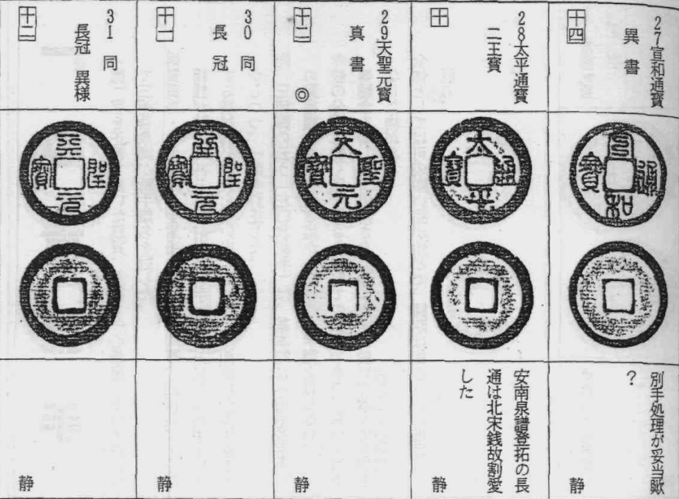 其中,将“宝”字具备一定特征的类别归为“一心景德手”,而将未归入此类的品种、以及“左口政和手”类别,再加上一些疑似北宋类的部分钱币暂时纳入此手类。增尾识泉所分类的“宽通大观手”虽推测亦属此系统,但因特征显著,故仍作为独立手类保留。