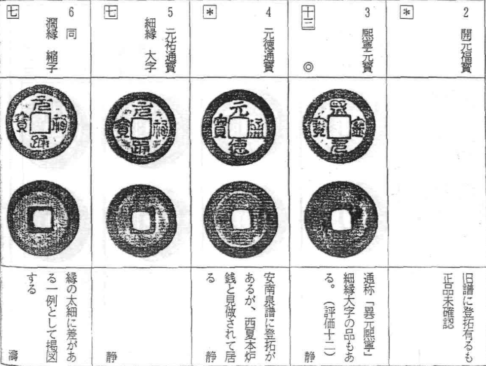 旧谱中虽收录有“元德通宝”,但该钱币被认为是西夏于元德年间(元德元年为1120年,至1126年)所铸造,故本谱不予采纳和评价。