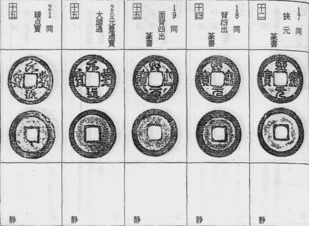 安南历代钱和其他手类钱中也有采用同一手法进行阔缘化的品种,这些钱币散见于各处(指没有统一归类),原则上这些钱币应视为各自的阔缘、缩字版别看待。所以在此只将中国钱文阔缘化的钱币列出。