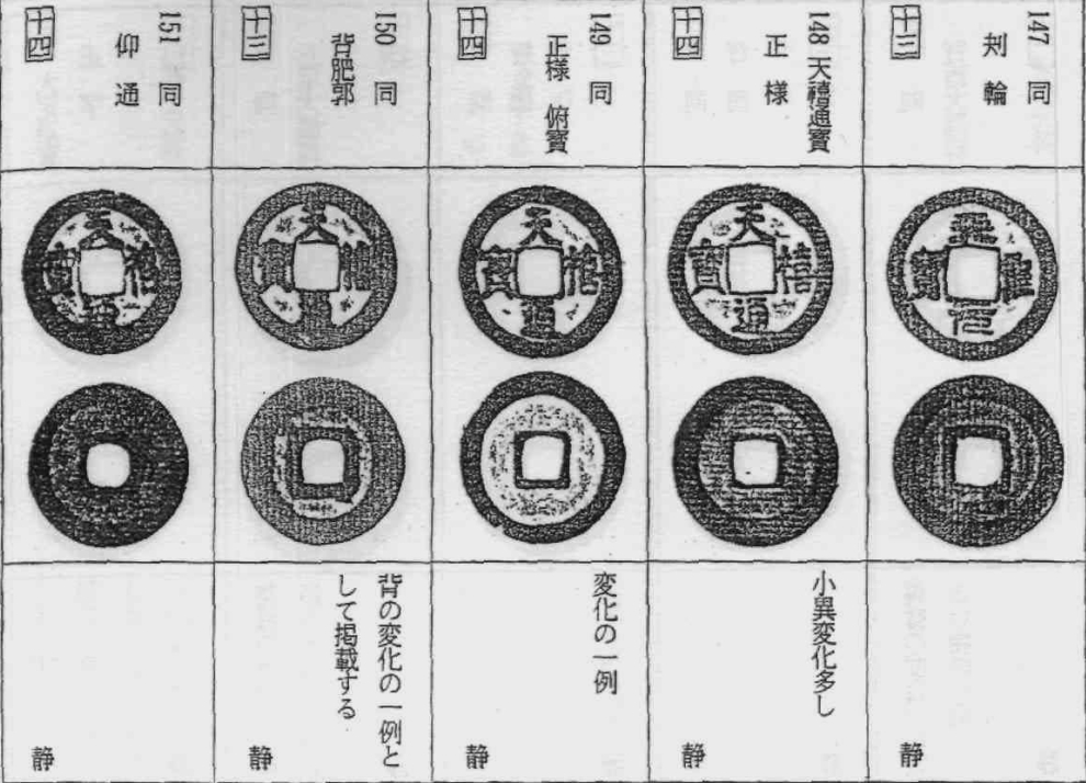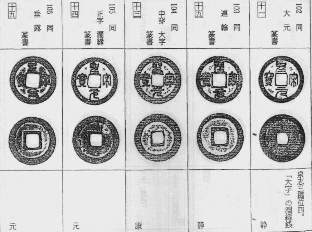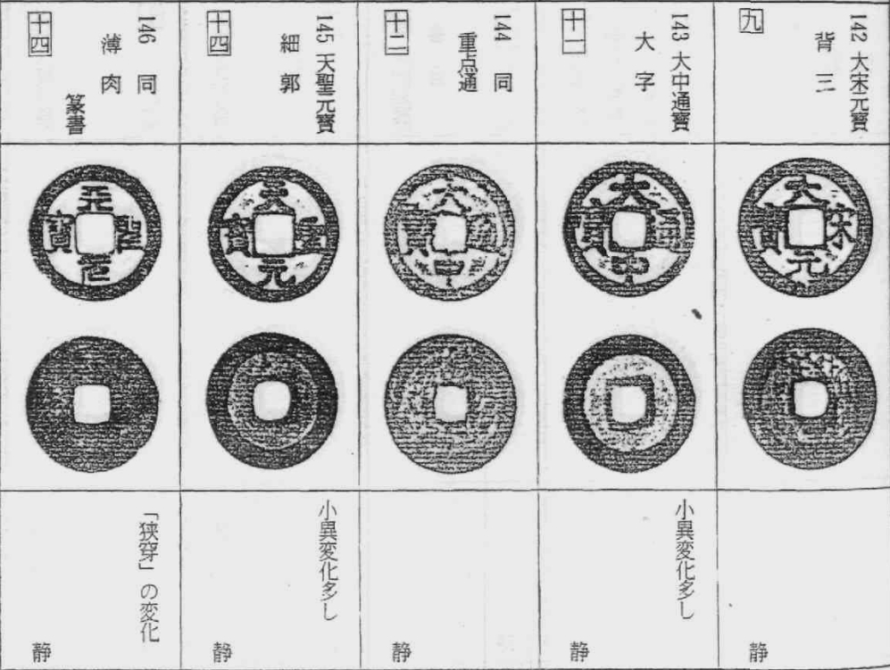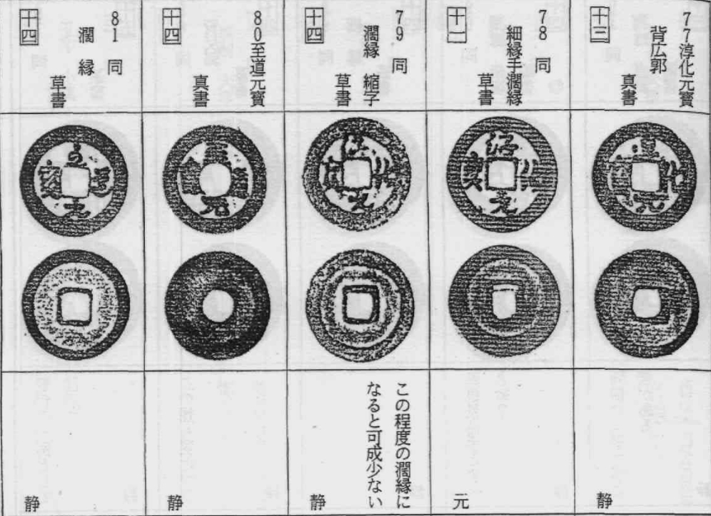 安南历代钱和其他手类钱中也有采用同一手法进行阔缘化的品种,这些钱币散见于各处(指没有统一归类),原则上这些钱币应视为各自的阔缘、缩字版别看待。所以在此只将中国钱文阔缘化的钱币列出。