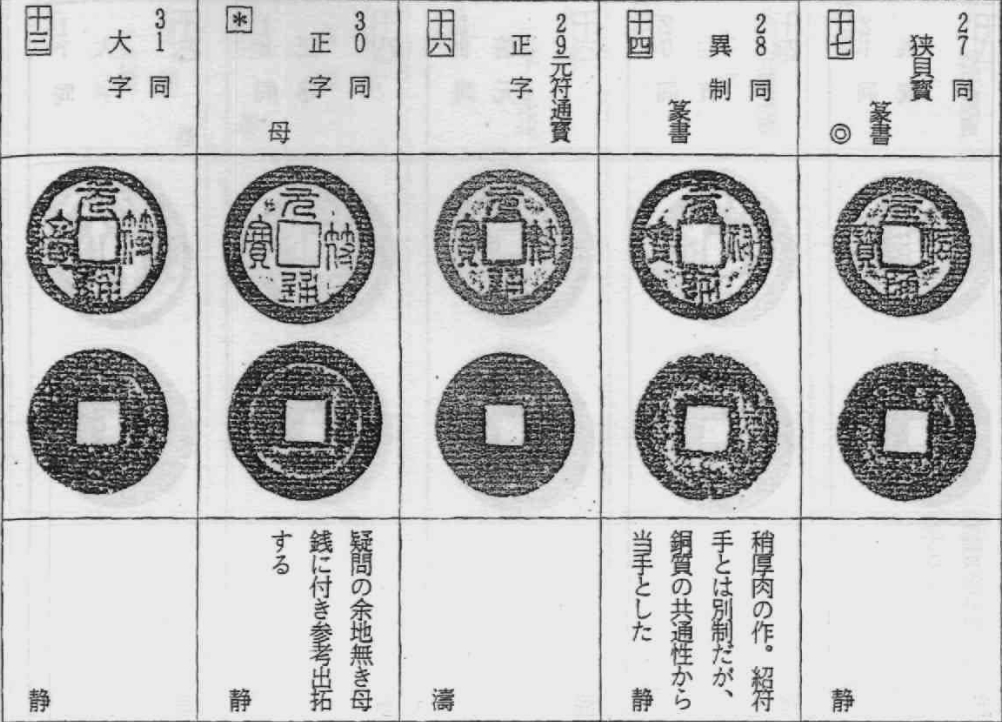 译文:正如风山轩所评价的那样,“同一个钱范两种铜料”,呈红色的为绍符手,呈黄色的为乾元手。这两种手类钱在铸造方面和文字风格上基本属于同一体系,主要通过铜质的不同来进行区分。具体来看,绍符手系列钱的含铅量较高,铸造得比较粗糙,呈红褐色。背面细郭地章浅,部分钱币甚至接近磨损不清的状态。