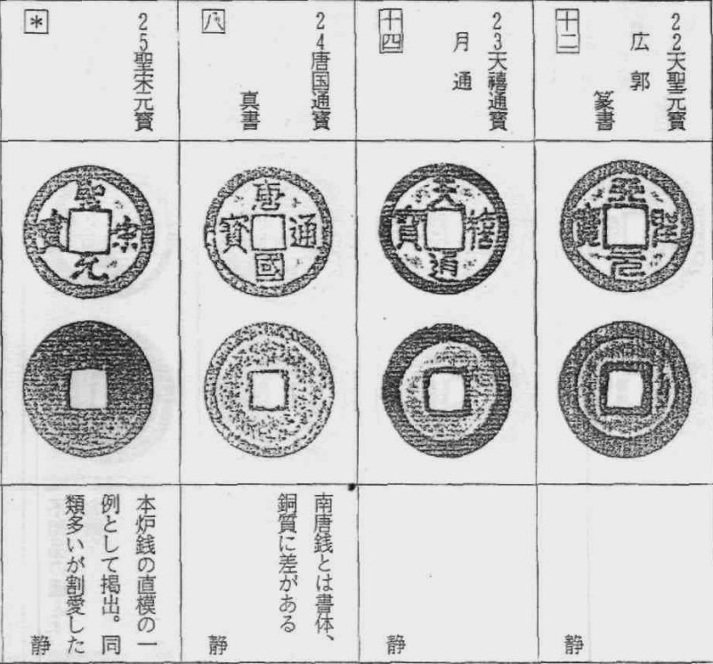 此外,被归类为“不知钱”(存疑钱)类别中的的“景德·横郭进元”等品种,即便归类为月通天禧手,也无明显的违和感。