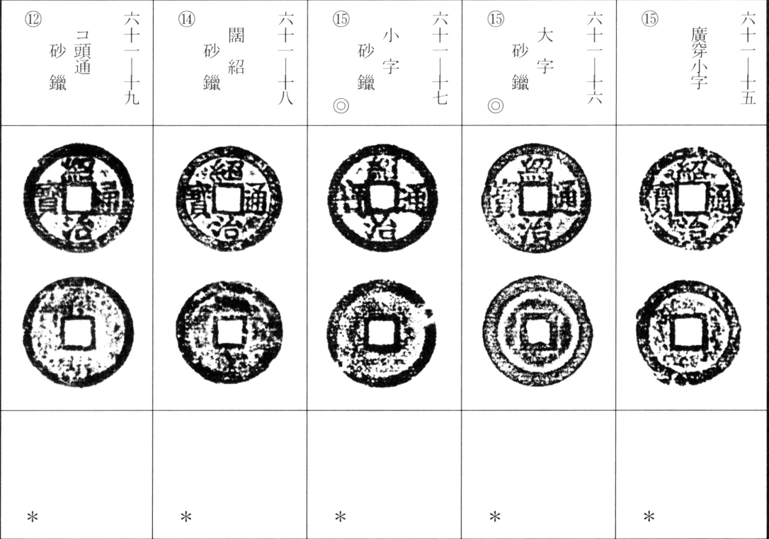 站长注:绍治年号(公元1841年—1847年)共使用7年。绍治时期亦铸有金质钱和银质钱,以及至少铸造了13万贯铅锌钱。据说还铸造过如光中通宝一样背有四月版式的绍治通宝,未见实物。