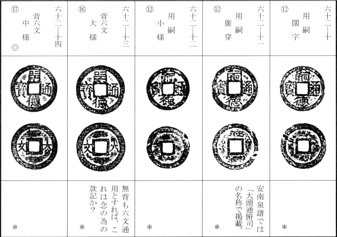 站长注:嗣德年号(公元1848年——1883年)共使用36年。嗣德通宝背六文始铸于嗣德二十五年(公元1872年)十月,据说有些背六文钱是用搜集来的西山朝钱币熔铸的。嗣德时期也铸造了金质钱和银质钱,以及数量不算少的铅锌钱。