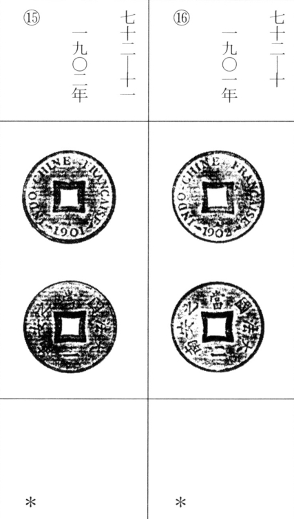 此后制造的货币,与前述的交趾支那货币大致规格相同。正面记有“印度支那”和纪年,背面刻有汉字款识。