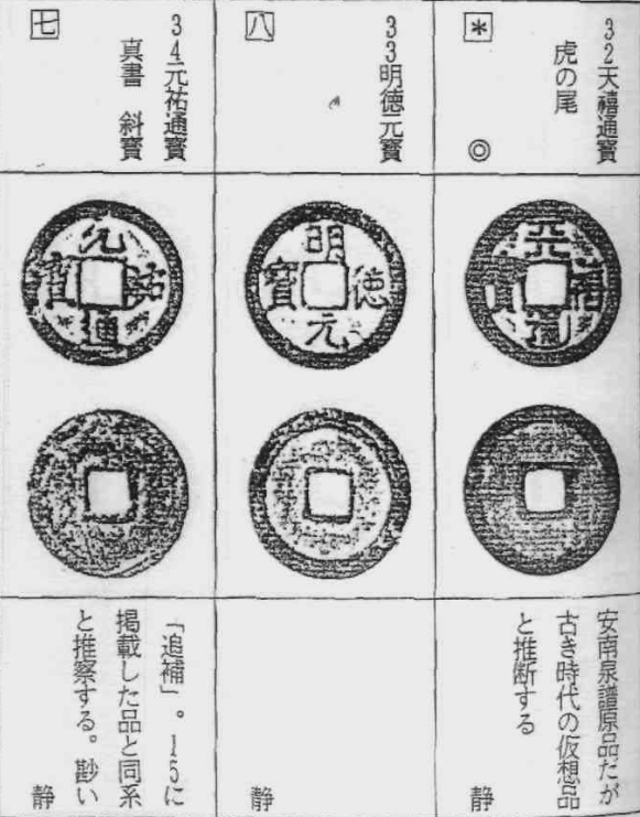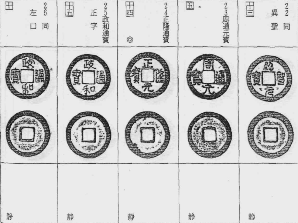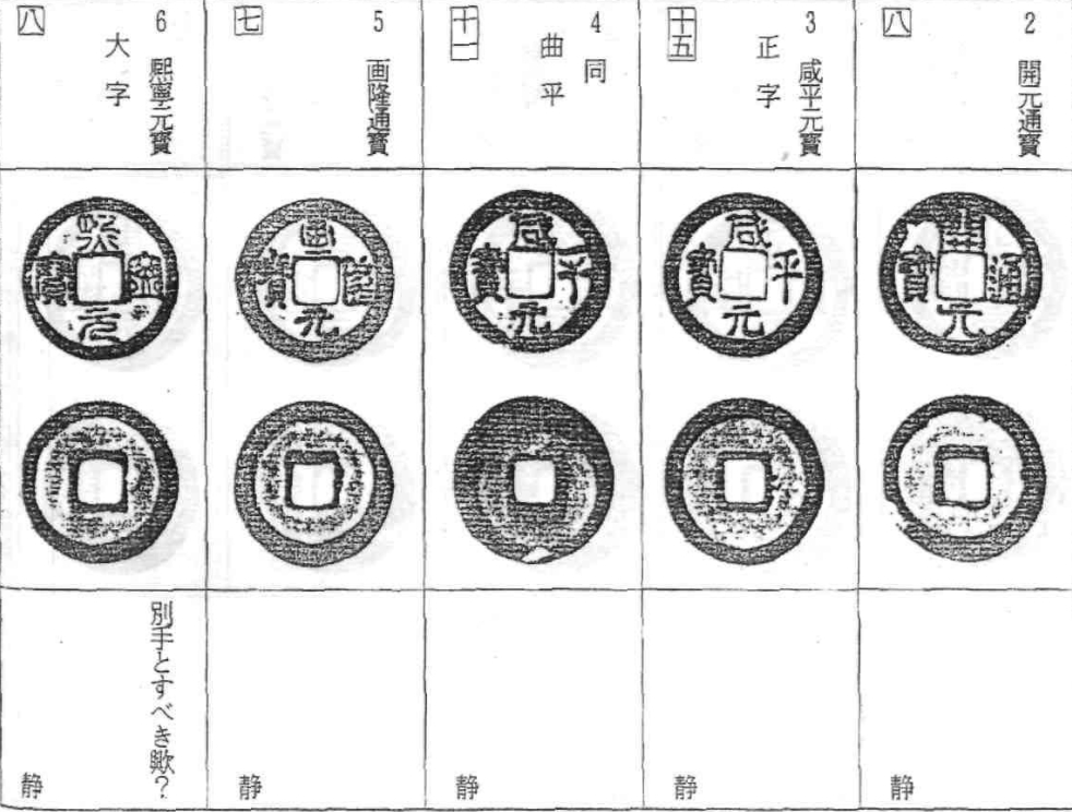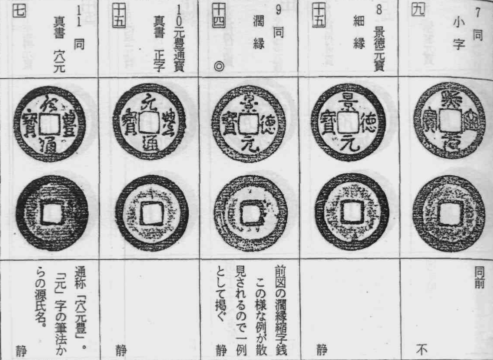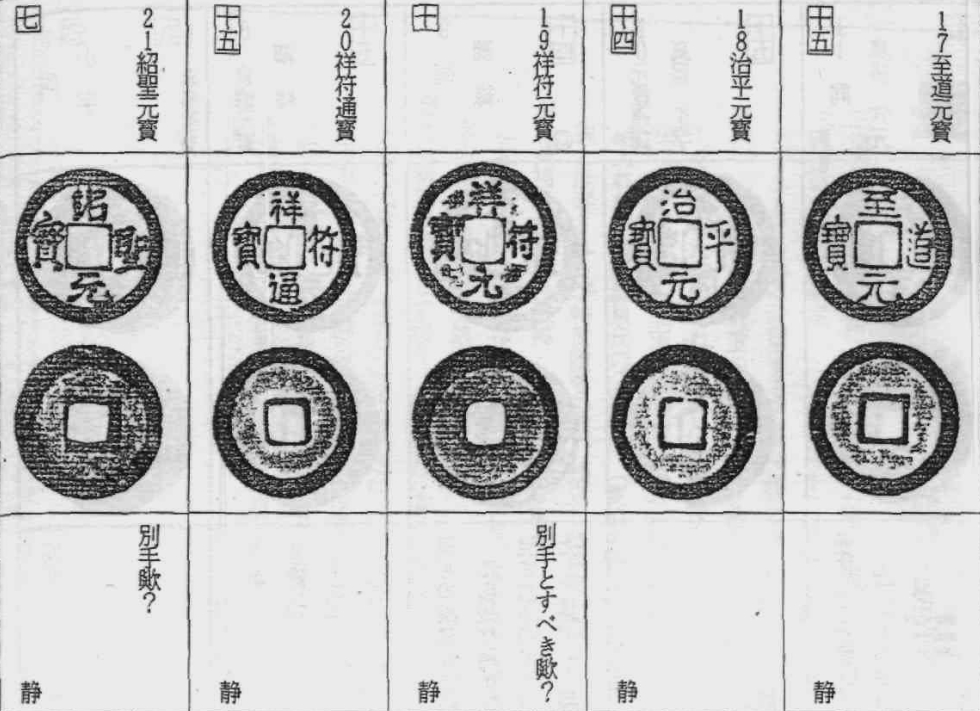 其中,将“宝”字具备一定特征的类别归为“一心景德手”,而将未归入此类的品种、以及“左口政和手”类别,再加上一些疑似北宋类的部分钱币暂时纳入此手类。增尾识泉所分类的“宽通大观手”虽推测亦属此系统,但因特征显著,故仍作为独立手类保留。