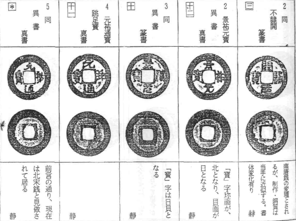 这些被介绍的钱币并非出自同一铸钱炉或同一钱监,但凡是与北宋本朝钱炉所铸钱币存在差异的类别,都统归为此类。其中有些品种被推测可能属于边区钱炉、民间私铸,甚至可能是日本铸的鐚钱,但这里沿用了旧谱的分类,有待日后修正。