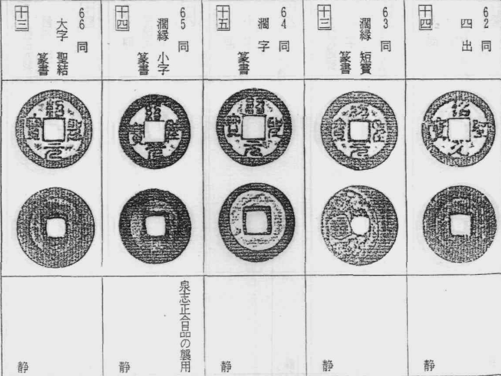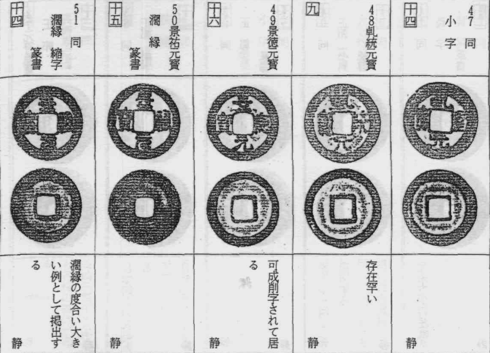 安南历代钱和其他手类钱中也有采用同一手法进行阔缘化的品种,这些钱币散见于各处(指没有统一归类),原则上这些钱币应视为各自的阔缘、缩字版别看待。所以在此只将中国钱文阔缘化的钱币列出。