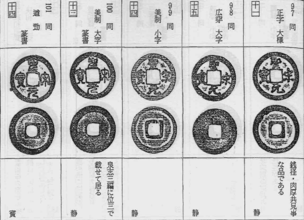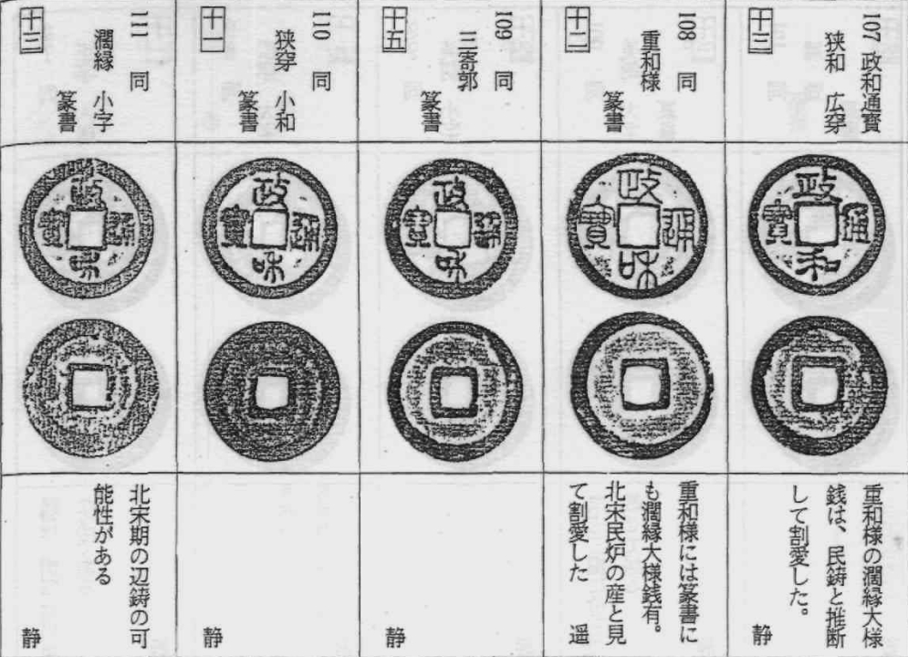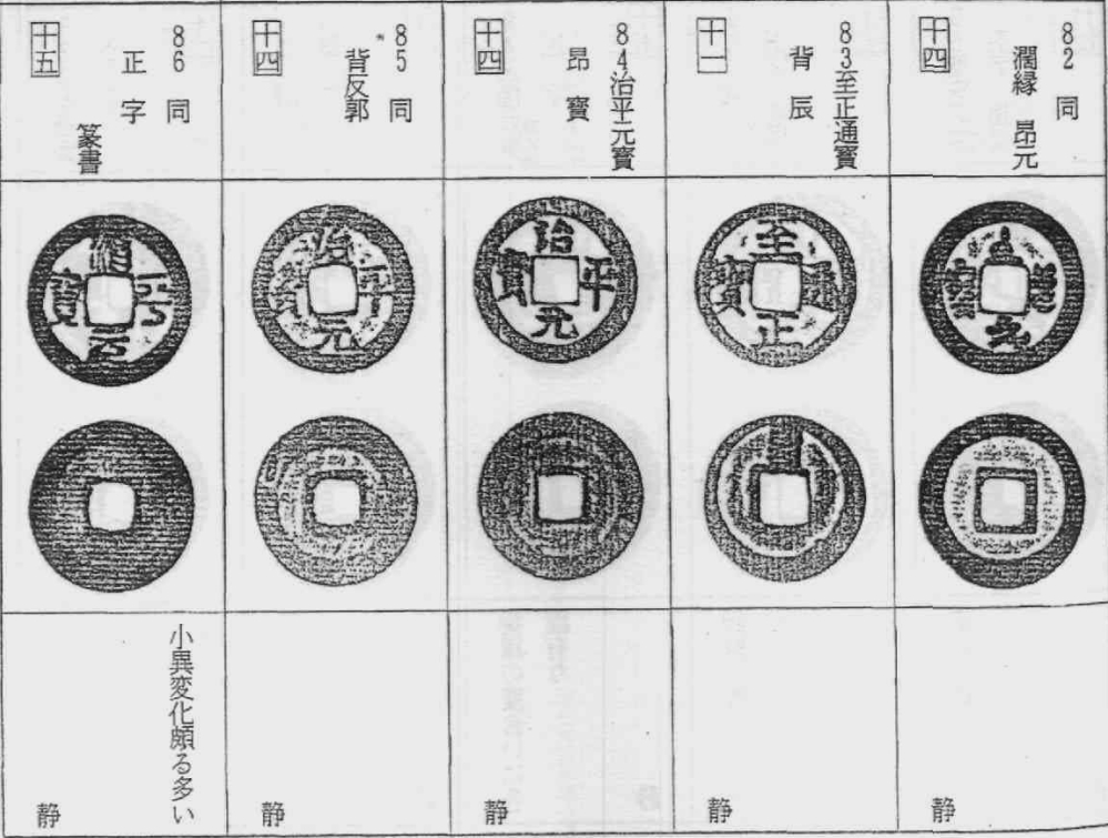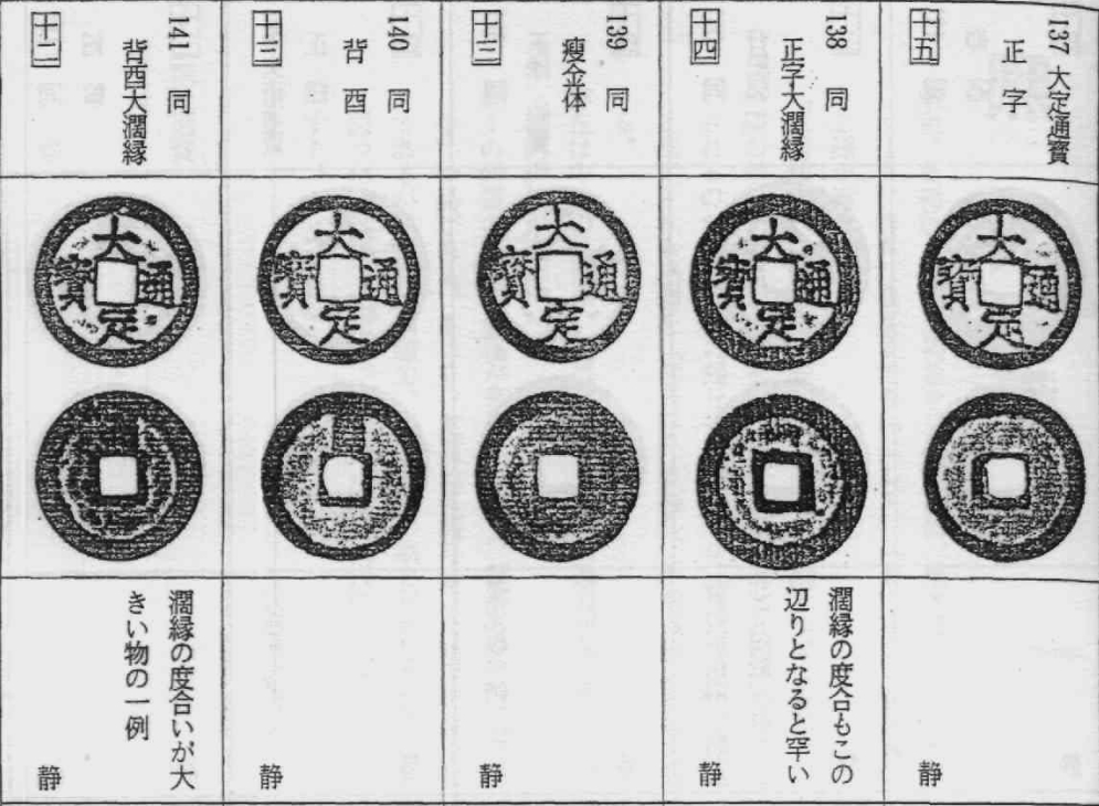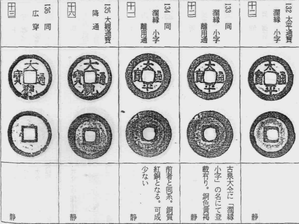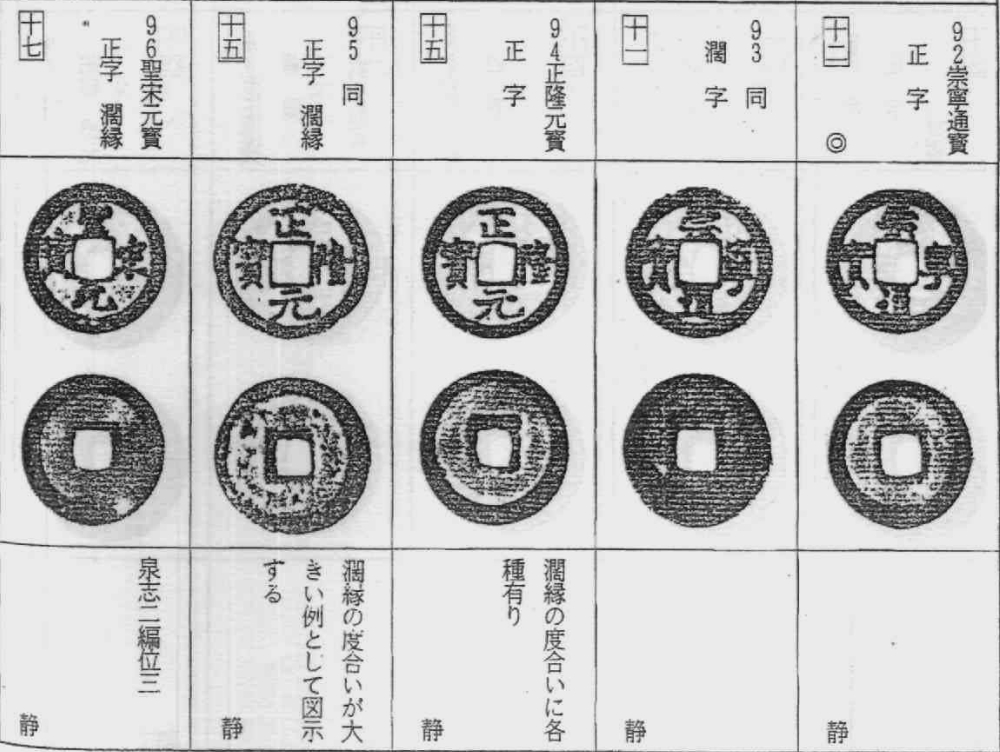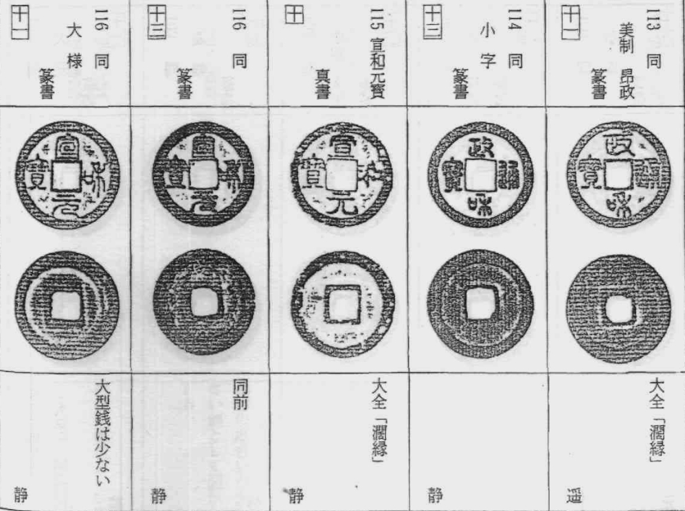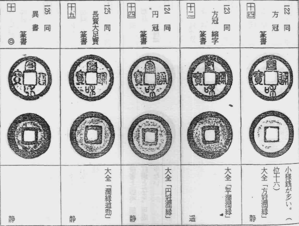 安南历代钱和其他手类钱中也有采用同一手法进行阔缘化的品种,这些钱币散见于各处(指没有统一归类),原则上这些钱币应视为各自的阔缘、缩字版别看待。所以在此只将中国钱文阔缘化的钱币列出。