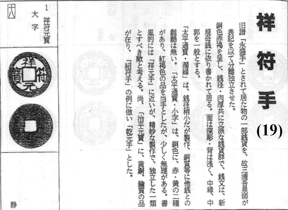译文:旧谱中被归类为“永盛手”的一部分钱币,已故的三浦吾泉老师以标记的方式将其分离出来,单独成立一个手类,即祥符手。